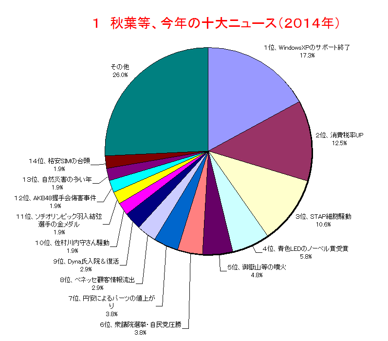 年の十大ニュースは、特に秋葉以外がとても多かったと思いました。でも、OKです。それは、秋葉大好き人間が