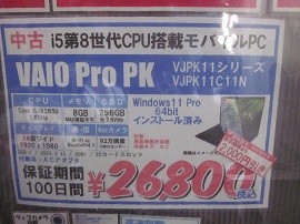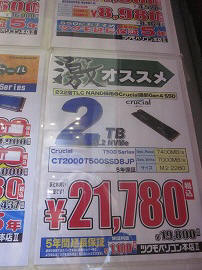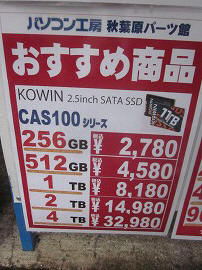2025年10月11日(土)雨 ![]() ![]() ![]() ども、Dynaです。上京しようと思ったら台風22号が来ました。 上陸はしなかったので、予定通り金曜日に高速を飛ばして横浜に来ました。 すると今度は台風23号が来ます。しかし困ったことに22号と同じ経路をたどるようです。 22号で被害を受けられた方々には本当にお気の毒です。 当方的には、23号が去ったあと車で帰る予定ですが、 まあ、台風の直撃は避けられたとはいえ、雨の秋葉巡回は辛いですね。 なお、10月14日にWindows10のサポート終了なのに、田舎の方よりノートPCの購入を頼まれました。 目標はWin11の入る予算1万円以内の据置型ノートPCです。あるかな? 〇ゆでたろう ![]() ![]() ![]() ・今日は「かけ」430円と無料券「南部わかめ」。「旨いなぁ〜♪」 次なる秋の無料チケットをいただきました。11月まで! ・昨日、上京した際に千歳船橋駅前の「丸亀うどん」で「かけ」を頼んだら、わかめまで無料トッピングとなっていたので、大盛で入れました。美味しかった! 〇YouTube ・動画は容量問題や時間がかかるのでYouTubeに戻します。 2025.10.12(日)UP 〇おやつ(デザート) ![]() ![]() ・さすがに気温が低いので「あんまん」¥160位をゲット! ・万世本店のビル解体中、1Fが無くなりました。 〇コンピュエース ![]() ・閉店しました。長い間ありがとうございました。 〇ジャンクコンフル ![]() ![]() ![]() ![]() ・2.5HDD 500GB \600 多数 ・3,5HDD 1TB \1200 多数、2TB \3000 多数 ・スリムBDドライブ 9.5mm、12mm 各1680円 多数 ![]() ・グラフィックボード \200、\300 多数 \200 1ゲット 〇おばちゃんのお店(グレースの倉庫) ![]() ・準備中 〇Rガーデン ![]() 〇パレットタウン跡地 ![]() ・更地から工事中へ 〇近所のお店 ![]() ![]() ・ド根性「桐」 枯れだしました。 〇なぞなぞ ![]() ・お休み 〇PC-EYES ![]() ![]() ![]() ![]() ![]() ![]() ・CF-SV8(8th) 4800円 5800円 6800円 各 1 〇ハードオフ秋葉原2号店 (店頭) ![]() ![]() (地階) ![]() ![]() ![]() ・PLやはり目立ちます。 ![]() ![]() ![]() ・EP120枚ですか…。 ![]() ![]() ![]() ・とっくりかと思いましたが、太鼓のようです。 ![]() ![]() ![]() ・広角は無いようです。 ![]() ![]() ・奇麗なCF-SZ6 \4400 1 ![]() ![]() ![]() ![]() ![]() ![]() ![]() ・この作品見てみたいです。是非! どうやら実写もののようですね。 〇セルスタR ![]() ![]() ・電流計と電圧計が付いたマイクロUSBケーブル \100 売り切れ ・マクセルのBD-RやREが大量に入荷しました。(CD-Rもまだまだあります。) BD-R 5枚 \250 10枚 \500 20枚 \1000 膨大 CD-R 300円/10枚 ・大量に購入を希望される方はお申し出下さい。とのことです。 〇あきばおー ![]() ![]() ![]() 〇ICON ![]() ![]() ![]() 〇じゃんぱら3 ![]() 〇U-Shop ![]() 〇サンボ ![]() ![]() ・並み 690円 〇トーアマート ・閉店しました。 〇パソコン工房本店 ![]() ![]() ![]() 〇ドスパラ本店 ![]() ![]() 〇あきばおー ![]() 〇インバース2 ![]() 〇インバース ![]() (店頭) (店内) スリムPC ¥5000以上 ¥3000引き ¥2000以上 ¥1000引き FMV i5 \4000-1000 膨大 NEC i3 \3000-1000 1台 ・CF-NX2 \1500 1 ・2.5SSD 256GB \2000 多数 128GB \1500 多数 ・M,2 SATA SSD 128GB \1000、256GB \1500、512GB \3000 多数 〇インバースの左隣のお店 ![]() 〇パソコン工房 ![]() ![]() ・店頭POPが大幅に変わりました。 ![]() ![]() ![]() ![]() ・ノートPC Dynabook B55/N i3-8130U 8GB ¥6800 数台 これは買いか?(液晶表示が弱いのでパス) ・スリムBD UJ240等 2000円 多数 12mm、 〇Can★Do ![]() ・熊よけ用鈴 同ホイッスル等 \110*3 ※効果は弱いようですが…。気は心で。 〇ハードオフ秋葉原1号店 ![]() ![]() ![]() ・レイアウトが変わりましたね。動作確認台が立派になりました。 ![]() ![]() ![]() ![]() ![]() ![]() ![]() ![]() ・ソノシートでしょうか? ![]() ![]() (2F) ![]() ![]() ![]() ・え!LPレコード?まさかLD? 〇GENO ![]() ![]() 〇まんだらけ秋葉原2号店 ![]() ![]() ![]() ![]() 〇あきばおー ![]() ![]() ・電池CR2032 5個入り \220 1ゲット! 〇千石 ![]() ![]() 〇イオシス ![]() ![]() 〇秋月 ![]() ![]() (2F) ![]() ・1/4抵抗 10KΩ、180KΩ 各1000個入り 1箱\10 数個 2箱づつゲット 〇オラオラ (1F) ![]() (2F) ・CF-SZ5 \8000*5割(半額) 数台 ・CF-SV \15000*4割(6割引) 数台 〇ジャングル ![]() ![]() ・CF-SV 8000円 1 〇あきばおー ![]() 〇ツクモ本店 ![]() ![]() ![]() ![]() ![]() 〇浜田 ![]() ![]() 〇イオシス ![]() ![]() ![]() ![]() 〇AKIBAJUNKS ![]() ![]() ![]() ・CF-SV7 \6000 多数 〇東映無線 〇最終処分場 ![]() ![]() ![]() ![]() ・今回は忘れずに地階へ ![]() ![]() ![]() ![]() 〇Shigezone(シゲゾーン) 〇千石2号店 〇中央通り ![]() ![]() 〇イオシス ![]() ![]() 〇あきばおー ![]() 〇ツクモeX ![]() ![]() ![]() ![]() ![]() ![]() ![]() ![]() ![]() 〇じゃんぱら本店 〇磁気研究所 〇駅前 〇マツモトキヨシ 〇ツルハドラッグ(末広町の旧三菱東京UFJ銀行跡地ビル) ーーーーーーーーーーーーーーーーーーーーーーーーーーーーーーーーー ◎本日のお宝 ![]() ・ジャンクコンフル グラフィックボード ¥200− ・Can★Do いろいろ ¥330− ・あきばおー CR2032 5個入り ¥220− ・秋月 抵抗 4000本 ¥40− ・マツモトキヨシ チョコレート ¥213ー ーーーーーーーーーーーーーーーーーーーーーーーーーーーーーーーーーー 計 ¥1003− <<