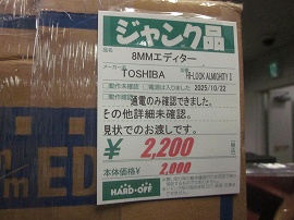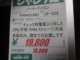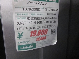 2025年11月29日(土)曇り ![]() ども、Dynaです。 先月、Windows11の入ったPCの購入を依頼されて秋葉原で物色しましたが、結局良い物が見つからず、 当方の所有していた古いDynabookで凌いで頂きました。 しかし、その後カメラが付いていないことが判明して、カメラが付いているノートPCの購入を再依頼されました。 ターゲットとしては当方の所有しているCF-SZ6当たりが良いのですが、ちょっと古いのでCF-SVも狙ってみようかと思っています。 うまく購入出来ると良いのですが…。 なお、本日の夕方、まーすけ隊員と合流して「忘年会」と「来年の夏のイベント」の調整をします。 〇ゆでたろう ![]() ![]() ![]() ![]() ・今日も「かけ」430円と無料券「南部わかめ」。(無料券は11月末で終了)「旨いなぁ〜♪」 もつ鍋ラーメン? 当方には無理…。 〇YouTube ・動画は容量問題や時間がかかるのでYouTubeに戻します。 2025.11.30(日)UP 〇おやつ(デザート) なし 〇コンピュエース 〇ジャンクコンフル ![]() ![]() ![]() ![]() ![]() ![]() ・2.5HDD 500GB \600 多数 ・3,5HDD 1TB \1200 多数、 ・スリムBDドライブ 12mm 1500円 多数 ・スリムPC FMV i3 \2000 多数 〇おばちゃんのお店(グレースの倉庫) ![]() ![]() ![]() ・CF-SZ6 \4500 3、 液晶割れ \3000 1 (店内) ・CF-SV7 \13000、\12000 多数 AC付 SSD256GB Win11PRO入り ![]() ![]() ・いろいろ見てきましたが、結局ここの\12000をゲットしました。動作確認出来たためです。 ・HR01 \3900 多数 AC付き 〇Rガーデン ![]() ![]() ![]() ![]() ・CF-SV7 \22500 多数 (中古) 〇パレットタウン跡地 〇近所のお店 〇なぞなぞ ・お休み 〇PC-EYES ![]() ![]() ![]() ![]() ![]() ・CF-SV8 中古 \26000-2000 多数 (10月の価格:ジャンク)→ CF-SV8(8th) 4800円 5800円 6800円 各1 :先月はこんなにお安かったとは…。 〇ハードオフ秋葉原2号店 (店頭) (地階) ![]() ![]() ![]() ・BOSEのアンプですか…。 ![]() ![]() ![]() ![]() ![]() ・高! 本当でしょうか? この価格! 人気があるのですね。 ![]() ![]() ・SZ6が2万円とは? どうなってしまったの? ![]() ![]() ![]() ![]() ![]() ![]() ![]() ![]() (2F) ![]() ![]() ![]() ![]() ![]() ・でかいSPです。 〇セルスタR ![]() ![]() ![]() ・大量にあったマクセルのBD-RやRE 無くなりました。 〇あきばおー ![]() ![]() ![]() 〇ICON ![]() ![]() ![]() 〇じゃんぱら3 ![]() ・3.5HDD 1TB \2080 多数 (高くないか?) 〇U-Shop ![]() 〇サンボ ・並み 690円 〇トーアマート 〇パソコン工房本店 ![]() ![]() ![]() ・小さなデジタルカメラ 〇ドスパラ本店 ![]() ![]() 〇あきばおー ![]() ![]() ![]() 〇インバース2 ![]() ![]() 〇インバース ![]() (店頭) (店内) スリムPC ¥5000以上 ¥3000引き ¥2000以上 ¥1000引き FMV i5 4590 \4000-1000 膨大 ・CF-SZ6 \8000 2 (高くないか?) ・CF-SV \20000 多数 ・M.2 SSD 256GB \1500 多数 ・3.5HDD 2TB \2500 1TB \1500 500GB \500 多数 ・2.5HDD 750GB \1200 多数 ・ 同 SSD 120GB ¥1500 多数 〇インバースの左隣のお店 ![]() ![]() 〇パソコン工房 ![]() ![]() ・店頭POPが大幅に変わりました。 ・ノートPC CF-SV \8000 美品しかしフレーム割れ 2 ・スリムBD UJ240等 2000円 多数 12mm、 〇Can★Do 〇ハードオフ秋葉原1号店 ![]() ![]() ![]() ![]() ![]() ![]() ![]() ・CF-SZ5が2万円 うそでしょ! 〇GENO ![]() 〇まんだらけ秋葉原2号店 〇あきばおー 〇千石 ![]() ![]() ![]() ![]() 〇イオシス ![]() ![]() 〇秋月 ![]() (2F) ![]() ・1/4抵抗 470KΩ、6.8KΩ 750KΩ 10KΩ 各1000個入り 1箱\10 数個 1箱づつゲット 〇オラオラ (1F) (2F) ![]() ![]() ・CF-SZ5 \8000*5割(半額) 数台 ・CF-SV \16000*5割(半額) 数台 〇ジャングル ![]() ・CF-SV 8000円 1 →売り切れ 〇あきばおー 〇ツクモ本店 ![]() ![]() ![]() ![]() 〇浜田 ![]() ![]() ![]() ![]() ![]() ・何やらの実演販売 〇イオシス ![]() ![]() ![]() ![]() 〇AKIBAJUNKS ![]() ![]() ![]() ![]() ・CF-SV7 \6000 多数 〇東映無線 〇最終処分場 ![]() ![]() ![]() ・今回は忘れずに地階へ ![]() ![]() ![]() ![]() ![]() 〇Shigezone(シゲゾーン) ![]() ![]() ![]() ![]() ![]() ![]() 〇千石2号店 〇中央通り ![]() ![]() ![]() ![]() ![]() ![]() ![]() 〇イオシス ![]() ![]() ![]() ![]() ![]() 〇あきばおー ![]() 〇ツクモeX ![]() ![]() ![]() ![]() 〇じゃんぱら本店 ![]() 〇磁気研究所 〇駅前 〇マツモトキヨシ ![]() ・税込み \213 多数 1ゲット 〇ツルハドラッグ(末広町の旧三菱東京UFJ銀行跡地ビル) ーーーーーーーーーーーーーーーーーーーーーーーーーーーーーーーーー ◎本日のお宝 ![]() ・おばちゃんのお店(ガレージ) CF-SV7 ¥12000− ・秋月 抵抗 4000本 ¥40− ・マツモトキヨシ チョコレート ¥213ー ーーーーーーーーーーーーーーーーーーーーーーーーーーーーーーーーーー 計 ¥12253− <<イベント関係>> 〇ベルサール ![]() ![]() ![]() ・日本豚のイベントのようです。 ![]() ![]() ![]() ![]() ![]() ![]() ![]() 〇アキバCOギャラリー 〇Windows11なジャンクノートPC探し結果(条件:カメラ付きノートPC) ・結論から言うとCF-SV7をおばちゃんのお店で\12000にて購入しました。 ・これにはAC(\1500)と256GBSSD(インバースでは\1500)が付いているので良しとしました。 ・もっとお安い物も多数見つけましたが、フレームが割れていたり、KBが汚れていたりと人様に渡すには気が引ける物ばかりでした。 ・その点、おばちゃんのお店のは、Win11起動状況もしっかり見られ、結構