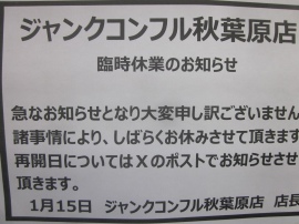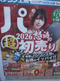 2026年01月14日(水) 追加情報 ・ジャンクコンフルの刻印が読めないCPUの結果について報告させて頂きます。 ![]() ・光の向きや強さを調整したら、何とか「SR3N5 3.60GHZ」と読めました。(一部強引)そこで裏の部品配置の同じのを探してみました。 ・その結果、裏の部品配置がそっくりなi3-8100を見つけました。どうやら決定のようです。 https://auctions.yahoo.co.jp/jp/auction/x1214444127?cpt_s=onlineads&cpt_m=websem&cpt_c=webpla&cpt_n=280499481_pla-161034437361_70728720441_c&gad_source=1 ・次の問題は「動くか」です。 ![]() ![]() ![]() ・動作確認はメインPCを使う予定でしたが、調べたら家内のPC NEC mate ML4 がi3-8100だったので、乗せ換えてみました。 ![]() ![]() ![]() ・左が入っていたi3-8100、右がジャンクコンフルで購入したもの。 ![]() ![]() ・交換してもOK,数時間動かしてもOKでした。良かった! ![]() ・CPUを戻すのも面倒なので、綺麗なCPUを手元に残し、Jコンフルのは家内用のPCに入れたまま返却しました。メデタシめでたし! 2026年01月10日(土) 晴れ ![]() ![]() ![]() ども、Dynaです。新年明けましておめでとうございます。本年もAkiparaをよろしくお願いいたします。 今年初めての出動になりますが、日記にも書いた通り、今回より今までのような写真貼りつけロールレポートでは無く、 解説等を多く入れたレポートにしたいと思います。そのため短編になりますが、量よりも質を狙う予定です。 あと、4月からまた信州に戻りますが、そうすると出てくるのが面倒になる可能性大のため、お宝発見隊の週末隊に 出動を依頼するかも知れません。(乞うご期待!?) 〇YouTube 〇ジャンクコンフル ![]() ![]() ![]() ・店頭に行列が出来ていました。「何の行列ですか?」と聞いても前の方も知りませんでした。まさか、2.5HDD500Gが700円に? ・店内まで入ったら「CPUガチャ」500円であることが判明。 ・まあ、新年だから「福袋的で良いのでは?」ということになり並んでいたらちょうど当方で終わりとのこと。 ・結局、前の方が辞退されたので、当方は最後の1個の1つ前になりました。「これが吉とでるか狂とでるか微妙ですね」 ![]() ![]() ![]() ![]() ・無事購入出来たのですが、CPUの型番が分かりません。「corei3」までは何とか見えました。しかし、その先が全く見えないのです。 ・最後まで悶々としていました。 ![]() ![]() ![]() ![]() ・帰宅後、アップで撮った写真です。(右は加工) こちらは裏面です。 【どちらも拡大可能】 ・何となく読めたのは core「i3-8100」か「i3-9100」、そうなら「中当たり?」かもです。 ・お店の方のお話では、大当たりはcore「i7-9700F」とか。素晴らしい! ・因みに、スリムPC i3-6700が2000円で1台ありました。 ・スリムBDドライブ12mmが1500円でまだあります。 ・3.5HDD500GBが400円で多数ありました。 ・シスコの白いルターWiFi5が1200円で多数あり、皆さん購入されていたのが気になりました。 〇おばちゃんのお店(店名看板無し) ![]() ・HR-01 2000円 多数、 HR-02 4980円 多数 〇PCーEYES ![]() ![]() ・店頭ジャンク箱1個50円いろいろ ![]() ・シガーソケット、同USB端子等4つゲット ・携帯用電池 KY-41B 100円多数 〇旧パレットタウン跡地 ![]() ・工事中 〇セルスタR ![]() ![]() ![]() ![]() ・今、YouTubeで話題沸騰の45型液晶4KTVがジャンクにて16500円で売られています。しかし行列が出来ていました。 ・4KTVでとても綺麗なようです。ジャンクの理由は大きめのヒートシンクが内部で割れているので、アルミ等のヒートシンクに 交換すればOKとのことでした。本日が巡回日でなければ当方も購入しましたが、持っての巡回は無理ですね。 なお、紐代が100円かかるのには笑えました。 〇インバース ![]() ・スリムPC NEC MB-H i5-4570 4000-1000円 1 ・CF-SZ5 6000円 3 OK、4000円 1と 3000円 1 は×(液晶割れとPWロック) ・CF-SZ6 4000円 綺麗だったので購入しようと電源ONしたのですが起動せず。がっかり 〇秋月 ![]() ![]() ・抵抗1/4W 100個入り 各種10円 いろいろ 5種ゲット ・お楽しみ袋 1000円 いろいろ 多数 皆さん真剣に見ていました。 〇オラオラ2F ・CF-SV7 16000円の半額 この辺が一番お安い感じです。 〇ツクモ ![]() ![]() ![]() ![]() 〇浜田電機 ![]() ・三菱のLED電球40W 程度 150円 多数 2個ゲット 〇イオシス ![]() ![]() ![]() ![]() ・チラシです。 ![]() ![]() ![]() ![]() ・すでにかなり売り切れ! ![]() ーーーーーーーーーーーーーーーーーーーーーーーーーーーーーーーーー ◎本日のお宝 ![]() ・ジャンクコンフル CPUガチャ 型番不明 500円 ・浜田電機 LED電球(昼光色)三菱 40W位? 2個 300円 ・PC-EYES 50円グッツ いろいろ 200円 ・秋月 抵抗100個入り10円箱5つ 50円 ・じゃんぱら5 USBマウス新品 @100円 2個 200円 ・マツモトキヨシ キットカット 246円 ーーーーーーーーーーーーーーーーーーーーーーーーーーーーーーーー 計 1496円 ![]() ![]() ・このあと、新年会の会場探しに行きました。どこも沢山の人が居て大変でしたが何とか開催出来そうです。 ・HO等動画配信ものはこちらのHPからはカットしました。YouTubeにUP予定です。(少し遅れるかも) ・本日は以上です。 | |