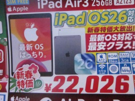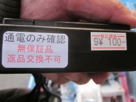 2026年01月17日(土)快晴 ![]() ども、Dynaです。本年2回目の出動です。東京は快晴が多く、暖かくて本当に極楽(パラダイス)ですね〜。 ・先週のレポートから解説を多くしてロールをやや短めにしました。その結果、評判もよろしいようなので、暫しこのパターンで頑張って見ます。 ・今週はテーマを設定しました。それは「スマホ画面のTV表示」です。 ・信州の古民家には100インチのスクリーンがあり、HOで300円にて購入したジャンクプロジェクターで投影して映画鑑賞に使って居ます。 ・このプロジェクターにはHDMI端子で入力していますが、秋葉有志から貸して頂いたHDMIドングルを挿すとスマホから無線で直接スマホ画面を表示出来ました。 ・そのため、夏のイベントや星空撮影会にて大活躍した次第です。 ・「これは便利!」と喜んだのですが、なぜかiPhoneの方は出来るのに、当方のアンドロイドAQUOS wish2は出来ません。 ・「なぜだろう?」とは思いましたが、多分その手の機能が無いのだと諦めて居ました。でも、有ると便利なので欲しい機能でしたが、スッカリ忘れて居たのですね。 ・そんなある日、秋葉有志から「こんなの有るよ!」と情報を頂きました。ありがとうございます。 ・この手の機器は日進月歩だからたぶん「使えるだろう」と勝手に判断し、取り敢えず「あきばお〜」で探すこととしました。 ・あと、買い物としてはHDMIケーブルと64GBのUSBメモリかマイクロSDカードを購入します。 ・では、巡回開始です。 〇YouTube 〇ジャンクコンフル ![]() ![]() ・先週のCPUガチャに気をよくして期待して来たのですが、「諸事情によりしばらくお休み」とのことでした。気になりますね。 〇おばちゃんのお店(看板無し) ![]() ![]() ![]() ・CF-SV7 SSD128GB M8GB 9900円 3台 AC付 HR-01 2000円 AC付 多数 (11月に来たときは12000円で購入したので、ちょっと微妙ですね。まあSSDは256GBだったので良いか…。) 〇U&J ![]() ・HDMIケーブル(延長)30cmくらい 100円 多数 〇PC-EYES ![]() ![]() ![]() ![]() ・HP M330 2000円 多数 これなんですかね? ![]() ![]() ![]() ・ONU用の電源供給器とのこと、100円 多数 必要になりそうなことは思いつかないですが1ゲット! ![]() ・今日もありました。50円箱 いろいろ 分波器を2つゲット! 〇HO秋葉原2号店 ![]() ![]() ・ニコンの「ハヤブサモデル」コンデジ44000円 これは目立ちます。 ![]() ![]() ・地下のLDコーナー 値札が付いていないので「100円かな?」ジャケットで欲しいのですが…。2枚組なので裏返しが面倒ですね。 (もっともLDプレーヤーもありません。) ![]() ![]() ・んー! やはりJBLは良いですね。良い音がしそうです。(1組持っていますが、良い音です。) ![]() ![]() ![]() ![]() ・HDMIケーブルは普通のジャンクが赤(330円)良いのが青(550円)でした。お!110円のを発見、1本買いました。(断線しているかも?) ・面白いことに100円ショップ物がありました。袋に入っています。袋には330円と書かれています。ここでの販売価格も330円です。何と!同じ価格? 〇セルスタR ![]() ![]() ![]() ・例の液晶TV「只今品切れ中」です。「只今」ってことは、今後入るかも…。 〇あきばおー(8号店) ![]() ![]() ・HDMIミラーリングアダプタ「S.T 2x2 Super Dongle」 無し! ・USBメモリやSDカードはかなり値上がりしています。しかし、microSDの64GBと128GBは写真のとおり1部お安くなっています。それ以外はメチャお高いです。 〇アキバU-Shop ![]() ・アルカリ単4電池 10本 200円 多数 1ゲット! 〇あきばおー(6号店) ![]() ![]() ![]() ![]() ・HDMIミラーリングアダプタ「S.T 2x2 Super Dongle」 ありました。残り3個! 価格は1000円です。 ・お店の方に聞いたら、全てのスマホが使えるかは分かりません。とのことでした。しばし検討・調査しましょう。 〇インバース ![]() ・スリムPC NEC MB-N i5 4000円-1000円=3000円 1 MB-H i5-4570 4000円-1000円=3000円 1 ・CF-SZ5 6000円 3 10000円 1 ・スマホ OPPO RENO7A 8000円 箱入り 多数 ・HDD 2.5 750GB 1200円 多数 3.5 2TB 2500円 多数 (個数制限あり) 1TB 1500円 多数 同 500GB 500円 多数 同 〇あきばおー(0号店) ![]() ![]() ・HDMIミラーリングアダプタ「S.T 2x2 Super Dongle」 無し! 〇秋月 ![]() ![]() ・HDMI新品2m 250円 多数 1ゲット 抵抗各種 1箱100入り 10円 5箱ゲット! 〇オラオラ ![]() ・CF-SV8 16000円 X 6割引き = 6400円 液晶割れ ・ 同 15000円 同 = 6000円 同 〇あきばおー(2号店) ![]() ・HDMIミラーリングアダプタ「S.T 2x2 Super Dongle」 はありました。でも1100円、多数あります。 ・しかし、この機種の箱に対応機種名等が書いて無いので、スマホで色々と調べました。すると、スマホ画面をTVに表示させるには「オルタネートモード」(ミラーリング)機能 対応スマホでないと見られないようです。 ・当方のスマホ AQUOS wish2 は対応していないようです。オルタネートモード対応機種一覧表 ・仕方ありません。もう少し研究しましょう。スマホ買換えしないと無理か? ・microSD 64GB 500円 1ゲット! 〇イオシス(路地裏) ![]() ![]() ![]() ・AQUOS wish5が販売されています。19800円、ミラーリング機能あるかな? ・ 同 wish3の新品が15800円。これにはミラーリング機能は