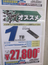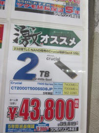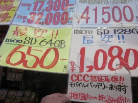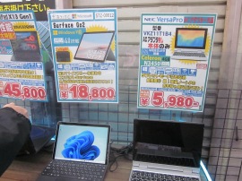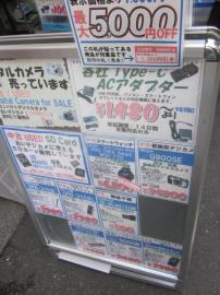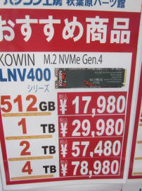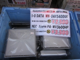 ども、Dynaです。三月になりました。春ですね。越冬もあとひと月の辛抱です。 ・先週、平和なムーミンのお話をしたら、世界ではとんでもない事態が始まってしまいました。 ・親族が仕事でドバイに居ますが、まだ脱出出来ていません。大変心配です。そして早く収まることを祈ります。 ・今、横浜のマンションで使っているホームルーターHR01のことを日記に書いたら、気になるコメントを頂きました。 ・それは「Speed Wi-Fi HOME 5G L11 と言うホームルーターが有り、楽天の5G対応していて結構早い」とのことです。情報ありがとうございます。 ・HR01も5G は有るのですが楽天のn77 バンドはカバーされて居ないので、4Gオンリーだったのです。 ・実は、L11ホームルーターは1年以上前に調べており一時購入を検討したのですが、当時の価格が高く、また横浜のマンションが楽天の5Gエリアでは無かったので見送っていました。 ・お安くなるのを待っていたらだんだん忘れがちになっていました。ただ、メモして手帳に入れており、秋葉巡回で似た機種を見つけると思い出して確認はしておりました。 ・現在も「おばちゃんのお店」に白いホームルーターが店頭に出ていますが、初めて見つけた時は「おー、発見か?」と一瞬喜びましたが、よく見たら機種違いでガッカリしました。 ・それはL02と言う似た機種で2500円とお安かったので、ひょっとして使えるか?と思い調べたら、使えますが4G 専用だったので諦めました。 ・今般教えて頂いたのは何かの縁と思い再度インターネット調べてみたら、L11はメルカリで4000・5000円程度から結構出ています。 ・重要な楽天の5Gエリアも調べたら、横浜のマンションは完全にエリア内になって居ました。残念なことに信州の古民家は未だに4Gです。 ・これなら導入OKでしょうか。しかしL11について秋葉巡回する時に気にはして居ますが、過去に見つけた事はありません。今日も無ければインターネットで買いましょう。 ・どのくらい速度がアップするか楽しみですね。ただ、信州の楽天は4Gなので信州にはHR01を置き、横浜にはL11常設して移動する時はsimを持って行くのも有りかと思います。(紛失が心配ですが、、、。) ・取り敢えず巡回開始です。 〇ゆでたろう ![]() ![]() ・5月末までのクーポン配布中。 〇ジャンクコンフル ![]() お休み 夕方再OPEN・メルコ WI-U2-300 箱入り 1200円が500円に 多数 ・3.5HDD 500GB 400円 多数 ・パナソニック レッツノート用AC 16V 4A 800円 残り少 ・スリム BDドライブ 12.5mm 1500円 多数 ・USB AC 2A 100円 多数 ・POE対応 アクセスポイント Silex SKY-AP302A 300円 多数 ・メルコ WEX-733HP 11ac 200円 多数 〇おばちゃんのお店(看板無し) ![]() L02・UQルーター L02 2500円→2000円へ 2個なら3000円 多数 5Gは不可 ・CF-SV9 19800円 1、 25800円 多数 メ16GB SSD256GB AC付 〇Rガーデン ![]() ![]() ・LANケーブル C6 5m 300円 多数 〇PC-EYES ![]() ![]() ・エプソン プロジェクター 3500円 1、1000円 1 (古いタイプ) ![]() ![]() ![]() ![]() ・ユピテル ドラレコ リアカメラ(OP-CM202IR)とケーブルセット 100円 多数 ・12V1A 多数 〇HO秋葉原2号店 ![]() ・詳細は YouTube 参照 〇セルスタR ![]() ![]() ![]() ・例の液晶TVは無し ・代わりに40型のTVが出ました。大量にありますが、果たして前回との関係が分かりません。4Kでもなく、まったく別物かも。→どうもそのようです。 ![]() ![]() 〇あきばおー ![]() ![]() 〇ICON ![]() ![]() ![]() ![]() 〇じゃんぱら3 ![]() ・USBマウス 100円 多数 2個ゲット 〇U-Shop ![]() ![]() ・店内、昔のU-Shopのような雑貨等が1Fに大量に出てきました。ただし、やや高です。 ・ジャンクPC(ノート)も1Fに来ました。 「ジャンク祭」開催中→再開 3000円以下は1000円に、3001円から5000円は3000円に、5001円から8000円は5000円に、8001円から10000円は8000円に、10001円から13000円は10000円に ・例 CF-SZ6 7500円 美品 →5000円に 1台のみ パナのACだけないので動作確認できません。 〇パソコン工房 〇あきばおー ![]() ![]() 〇インバース ![]() ・NECスリムPC i3 9100 HDD500GB 11000円-3000円 = 8000円 2 ・CF-SZ6 6000円-1000円=5000円 1 やや汚れ 同 8000円-1000円=7000円 7 良好 同 16000円-5000円=11000円 1 i7 良好 ・2.5HDD 500GB 1300円 多数 ・SSD m.2 SATA 128GB 2000円 多数 、NVMe 256GB 3500円 多数 mSATA 128GB 1500円 256GB 2500円 多数 2.5 128GB 2000円 なし 256GB 3000円 あり ・3.5HDD 2TB 2500円→4000円 なし、1TB 1500円→2000円 多数、 500GB 500円 多数 ・WiFiライブカメラ 箱入り 2500円 多数 〇パソコン工房 ![]() ![]() ![]() ![]() ![]() ・詳細はYouTube参照 〇HO秋葉原1号店 ![]() ![]() ![]() ・詳細はYouTube参照 〇GENO ・スリムBDドライブ 12.5mm 2000円 多数 ・USB3.2 GEN2 LAN付 USBHUB 1280円 多数 新品 〇あきばおー ![]() 〇千石 ![]() ![]() ![]() ・モバイルバッテリー から 9Vや12Vを出力できるUSBケーブル 1Aまでのようですが0.5Aまでが良いようです。 多数 〇イオシス路地裏店 ![]() ![]() ![]() ![]() ・ゲーミングヘッドフォン 500円 多数 ちょっとボロい! 〇オラオラ ![]() ・学割セール 学生証を見せるとノートPCがお安くなようです。 WPS Office2も+1000円(税込み)とのこと ・2F CF-SV7 16000円*0.5、15000