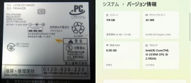 64bit(リカバリ領域あり、COAシールは擦れて読めません)