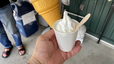 (暑いので、皆さんアイスクリームをゲット、すずらんソフト350円)