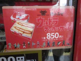【 他にも「ウルトラマンカツサンド」¥850や「ゴジラマンカツ」¥1000もあるようですが、おまけが付いている程度のようです。】
