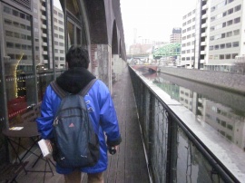 Dyna: 行く途中の「神田ふれあい橋」(人道橋)ですが、外国の方々が多いですね。どうやら神田川の対岸にインバウンド用?ホテルがあるようです。